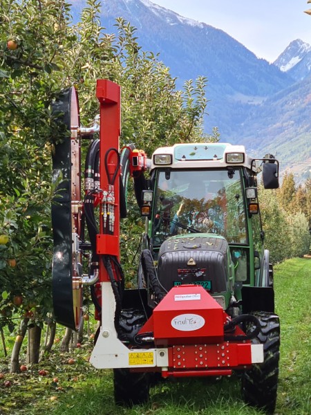 Deshojadora RED PULSE TRIO  especial para deshojado en arboles frutales, su utilizacion aumenta la entrada de sol en las plantas y mejora la coloración de las manzanas. El equipo  dispone de tres rotores de diametro extra grande, compresor posterior y funciones electro hidraulicas. La maquina esta nueva a estrenar procede de ferias. Excepcional ocasión si esta buscando este tipo de maquina.