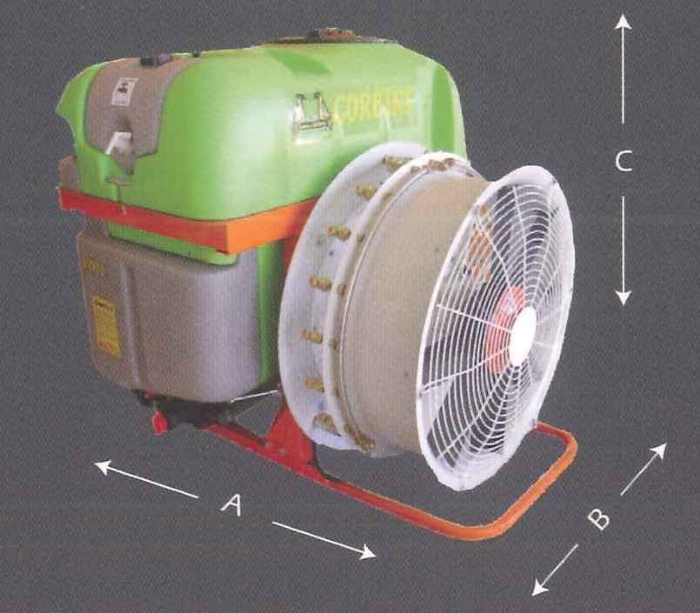 Esta máquina agrícola está fabricada con un grupo de ventiladores de varios modelos, todos ellos equipados con multiplicador con piñones en baño de aceite y pulverizadores dobles antigota utilizando boquillas de alta calidad con plaquitas cerámicas.