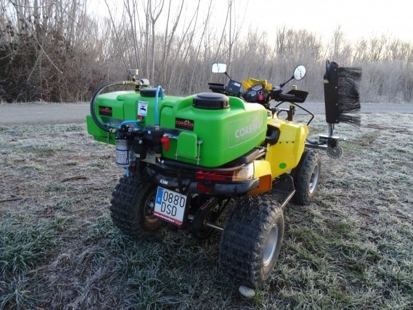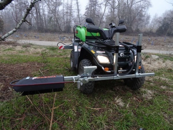 Barra herbicida adaptable a QUAD. Regulación altura de Trabajo manual. Regulación anchura de Trabajo manual. Plegado y desplegado de la pantalla de herbicida con sistema electrico a 12 volts. Pantalla de herbicida con antideriva. Muelle de Seguridad antichoque incluido. Caja de control y cables incluidos.